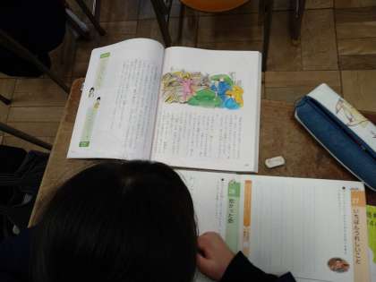 大地震で逃げる途中、お父さんとお兄ちゃんは倒れた家の下じきになった子どもを助けに行った文を読み、本当に地震が起こったらどう行動するのかをみんなで考えました。