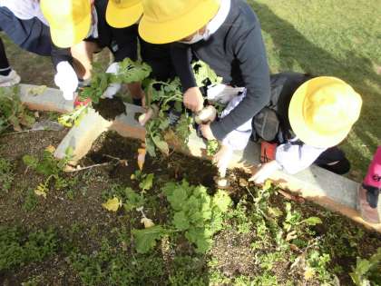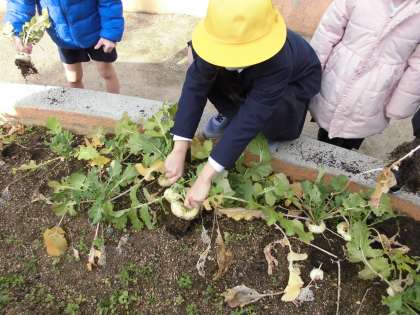 明日は天候がよくないため、6時間目に2年生みんなで、てんのうじかぶらを収穫しまた!