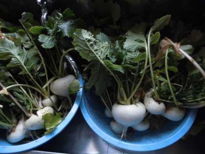 みんなが大切に育てたかぶ。4年生においしく調理してもらえますように!