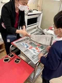 3月14日、図画工作科の時間に、紙版画の印刷をしました。