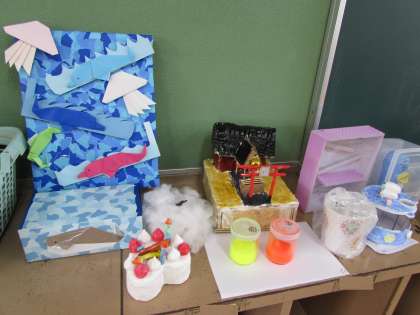 夏休み、子どもたちが取り組んだ作品を学校にもってきました。ひとつひとつの作品から、子どもたちの作品にかける思い、頑張っている様子が伝わってくるように思います。