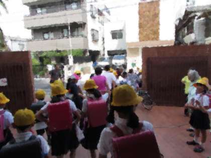 千本小学校でも、本日の5時間目、台風の接近により、暴風警報が発令されたとの想定で、避難訓練を行いました。