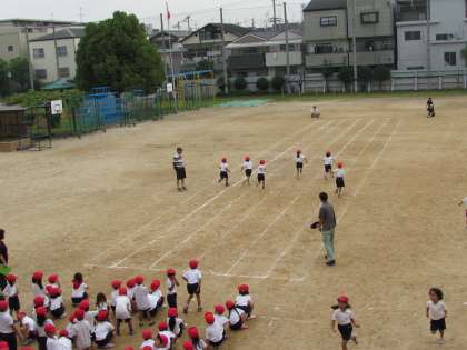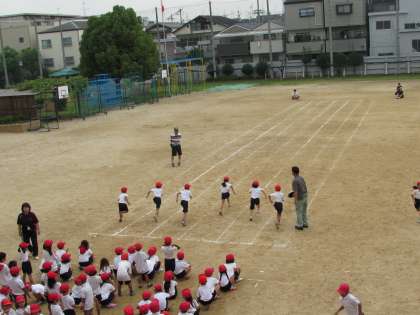 運動会に向けて、各学年の練習が始まりました。1年生は、運動場でかけっこの練習です。1学期に比べて、走りが力強くなっているように思いました。