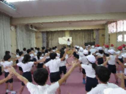 2年生の運動会の練習の様子をご紹介します。2年生は、ダンスの練習を始めました。手や足を大きく動かして、かっこよく踊ろう、と頑張っています。