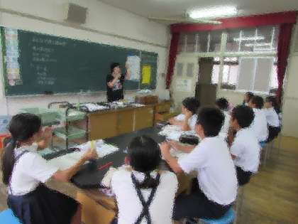 6年生の学習の様子をご紹介します。6年生は理科で、リトマス試験紙の使い方を学習しています。
