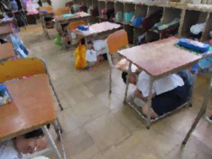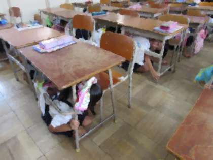 本日の午前11時、「大阪880万人訓練」が行われました。本日、地震が発生したとの想定のもと、訓練が行われました。本校でも、11時の緊急地震速報チャイム音に合わせて、子どもたちは机の下に潜り込みました。