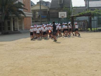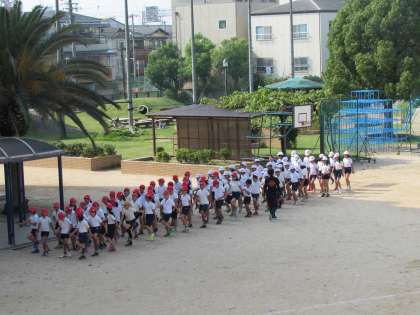 4年生が、運動会に向けて練習に取り組んでいます。今日は、行進の練習から始めました。