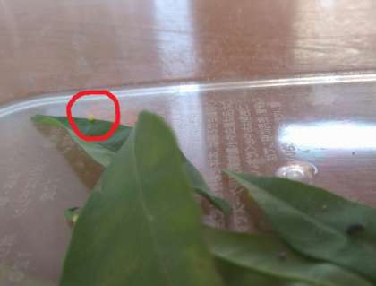 玄関のみかんの木にアゲハチョウのたまごを見つけました。