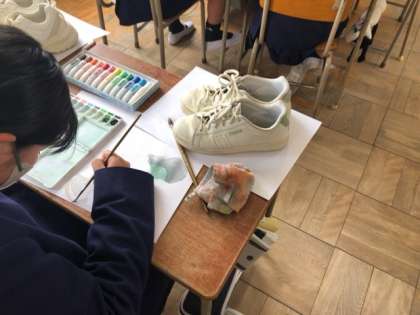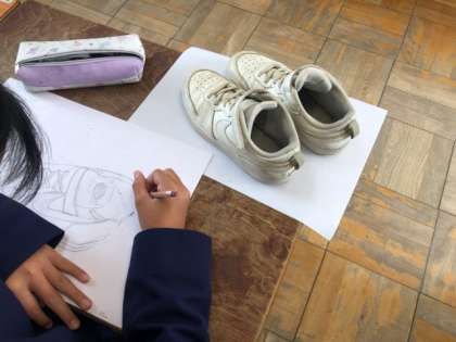 くつの細かいところまで描けています。