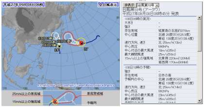 現在、日本の南海上に、台風18号が発生しています。明日には、近畿地方への接近も予想されます。現在、暴風域に入る確率は発表されていませんが、今後の気象情報にご注意ください。