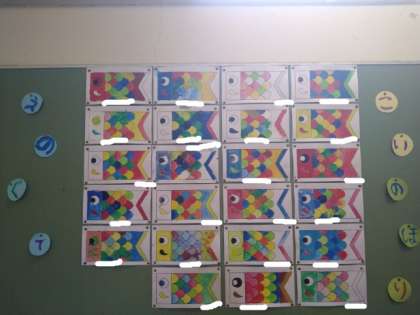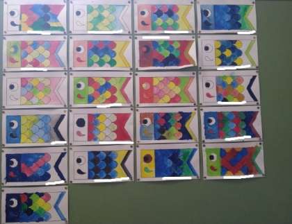 3年生の階段掲示もこいのぼりになりました。