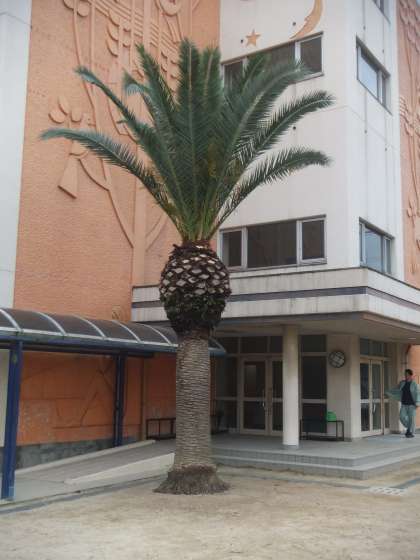 先週から管理作業員の園芸班で校内の剪(せん)定作業を行っていただきました。伸び放題だったソテツの葉もご覧のようにサッパリ。ありがとうございました。