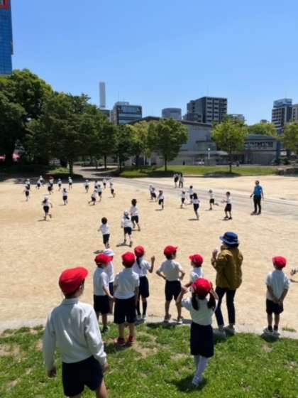 扇町公園での遠足を楽しんでいます。