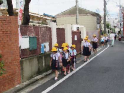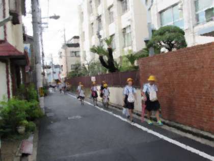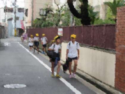 朝の登校の様子です。雨の止み間をぬって、子どもたちが元気に登校してきています。