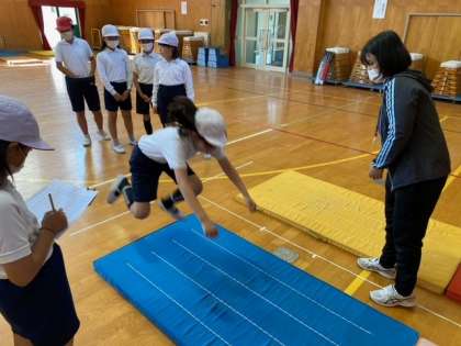 上体おこしと立ち幅跳びです。4年生のころより記録が伸びたようです。