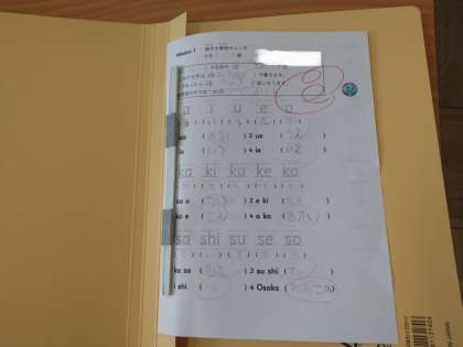 ローマ字のプリントはていねいに書き、たくさん「はなまる」をもらいました。