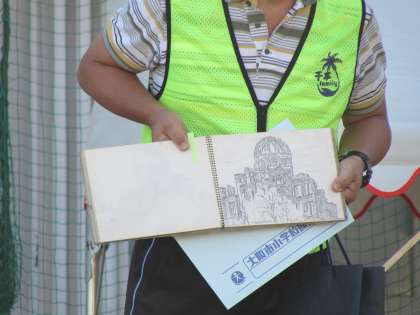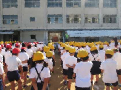 初めに、学校長からの話です。2学期になり2週間が過ぎ、規則正しい生活ができていますか、朝は遅れないように登校できていますか、という話、給食の残す量を減らすようにしましょう、という話、外で元気よく遊びましょう、という話でした。続いて、校長先生が昔、学生のころに描いた原爆ドームの絵を見せて、「アオギリにたくして」という本の紹介をしました。