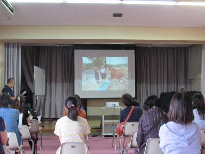 初めに、昨年の修学旅行の様子を動画で見ていただきました。その後、担任からくわしい日程や活動内容、持ち物などについての話をしました。