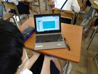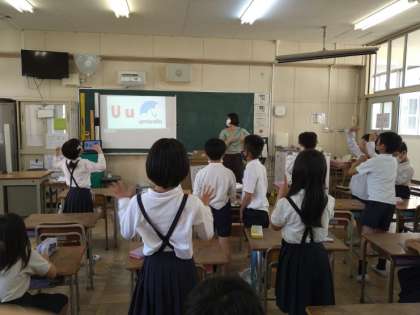 英語のうたをうたった後、タブレットを使って好きなものと嫌いなものを絵や文で入力しました。