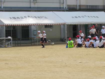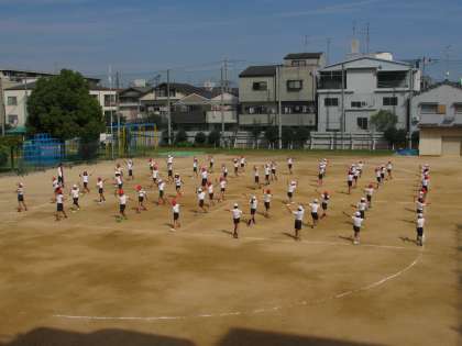続いて、個人走の練習です。5年生の個人走は、リレーです。全力でバトンをつないで走る仲間に、大きな声援がとんでいます。