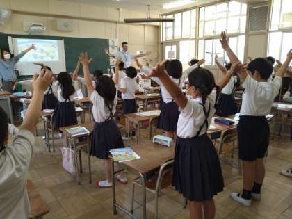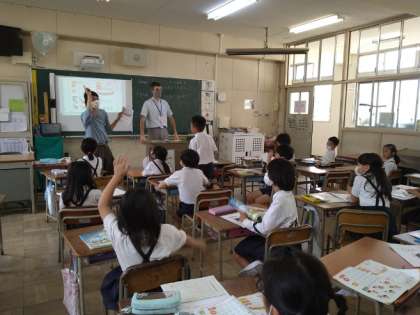 英語でうたをうたったり、数をたずねる活動をしたりしました。