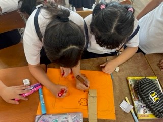 かわいいイラストを描いたり、穴をガムテープで補強したりしています。見ているだけで楽しい気持ちになりますね。