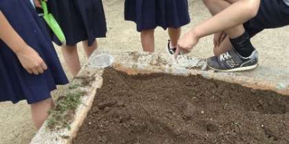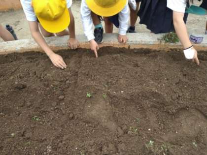 ヒマワリ、マリーゴールド、ホウセンカを植えました。