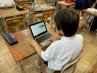 調べ学習や漢字の書き取り、タイピングの練習に取り組む子もいます。安全に気をつけて過ごすことができています。