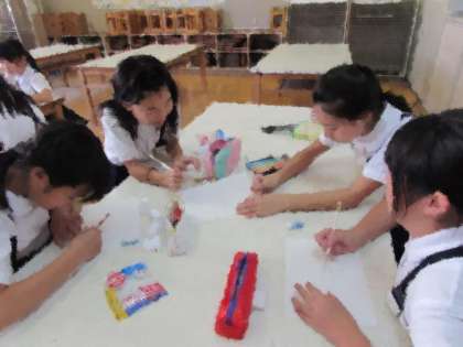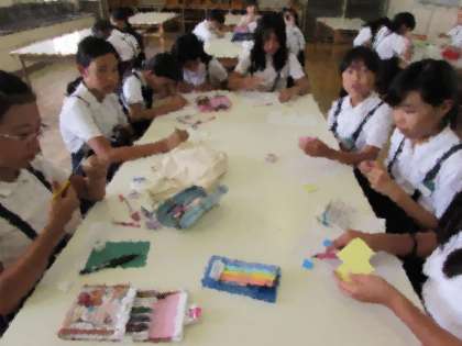 手作りクラブの活動の様子をご紹介します。今日は、消しゴムはんこ作りに取り組みました。消しゴムを使って、思い思いにはんこを作りました。
