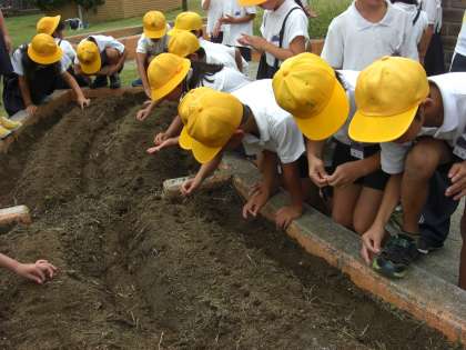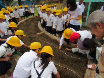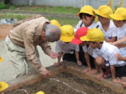 本日の3時間目、2年生は伝統野菜の取り組みとして、天王寺かぶらの種まきをしました。天王寺かぶらについて教えていただいた後、学習園に場所を移して種まきをしました。とっても小さな種を、子どもたちは慎重に、ひとり3粒ずつ土に蒔きました。