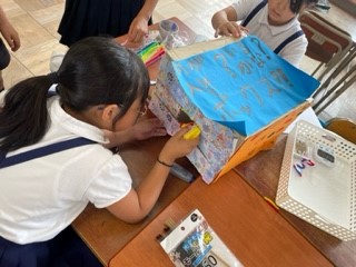 千本子どもまつりの準備に取り組んでいます。当日に向けて出来上がってきているものもあります。「何が入っているかなボックス」と書かれているので、ボックスの中身を当てるゲームとなります。