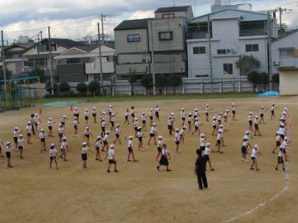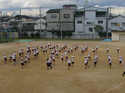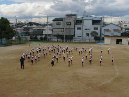 3年生の練習の様子です。3年生の団体演技は、「えいかんはきみにかがやく★あら馬」です。「えいかんはきみにかがやく(栄冠は君に輝く)」は、高校野球でおなじみの曲です。その曲に合わせ、リズミカルに踊ります。