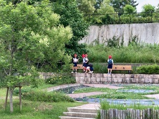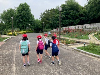 オリエンテーリングが始まりました。グループのみんなで協力してゴールを目指します。