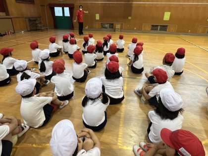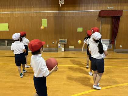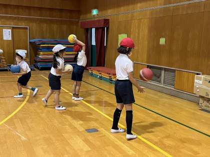 たくさんの的に向けて、ボールを投げる練習をしました。