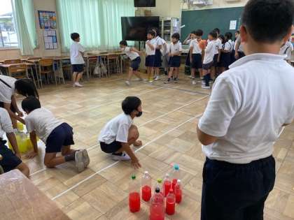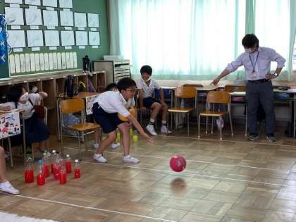 千本子どもまつりで5年生は「射的」と「ボウリング」をしました。