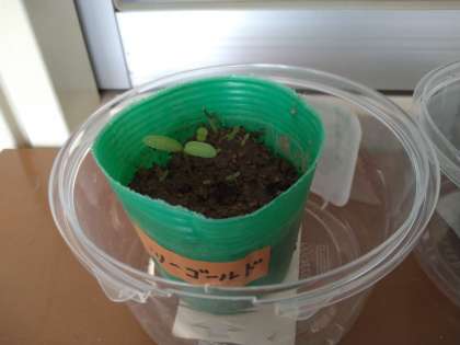 ヒマワリ、マリーゴールド、ホウセンカが発芽しました。