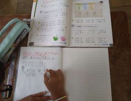 4ケタのたし算とひき算の筆算のしかたについて学習しました。