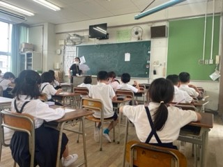 6月13日(火)は1年生のももうさスクールです。いつもとちがう教室で学習を進めています。