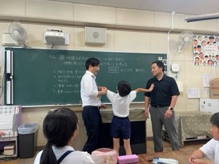 友だちとの関わりの中で考えが違う場面を想定してロールプレイをしています。指導者が考えの違いでもめているところに子どもたちが参加して止めています。とても暖かい関わり方ができています。