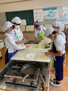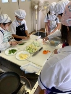 写真は野菜を切っている様子です。5年生の時に学んだことを活かして慎重に取り組んでいます。
