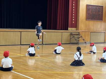 その後、成南中学校の体育の先生から、縄跳びを上手にとぶコツについて教えていただきました。