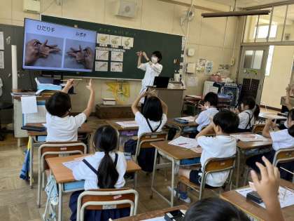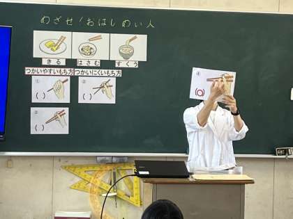 おはしの持ち方を教えていただき、おはしれんしゅうカードで一人ずつ100回練習しました。