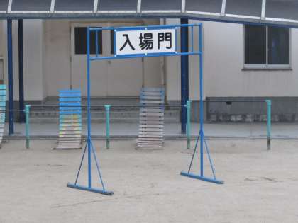 運動会まで、あと1週間となりました。今日はあいにくの天候のため、運動場を使った練習はできませんでしたが、放課後、入・退場門を立てました。