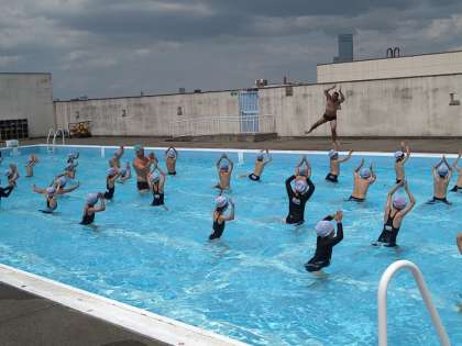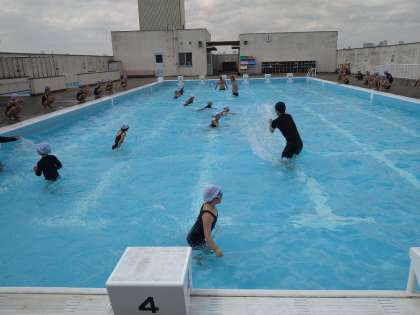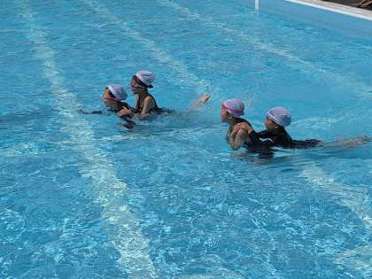 アヒルのたいそうや二人組で泳ぐ練習などをしました。