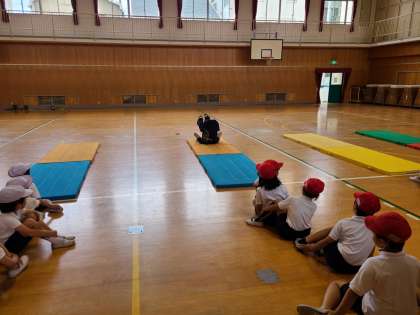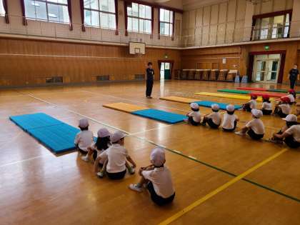 成南中学校の先生から、前転がりのコツを教えていただきました。