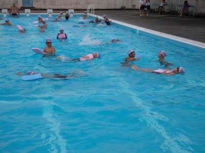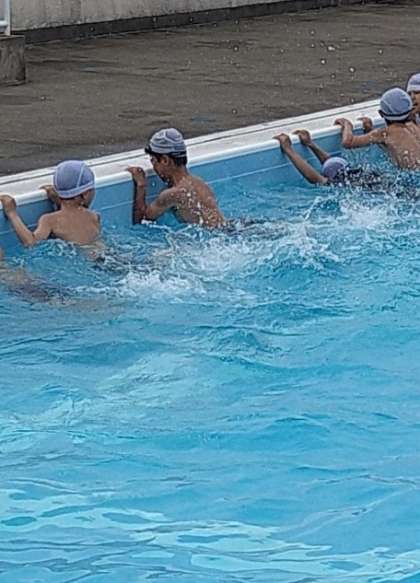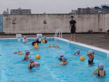 今日は、ボールやビート板を使ってバタ足の練習をしました。