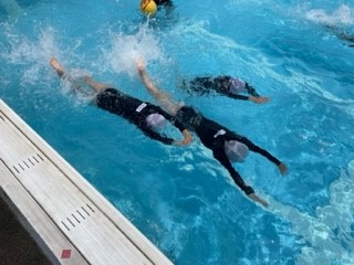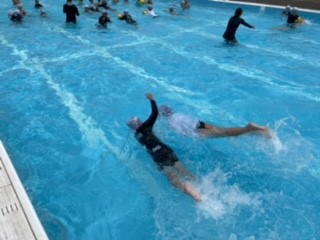 6月23日(金)の水泳学習の様子です。息継ぎをしながらバタ足で泳げるように練習しています。
