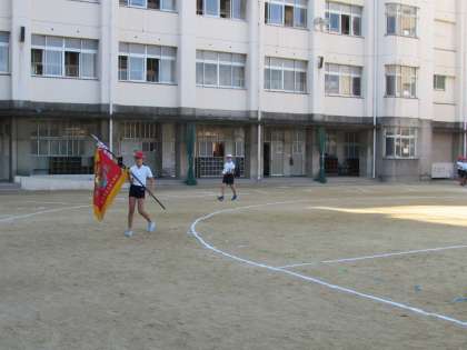 国旗・校旗・優勝旗、準優勝盾の順に入場してきます。、