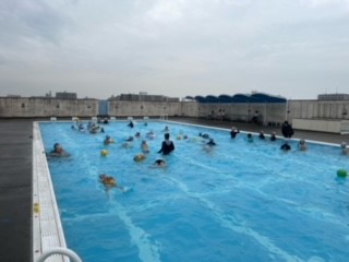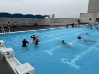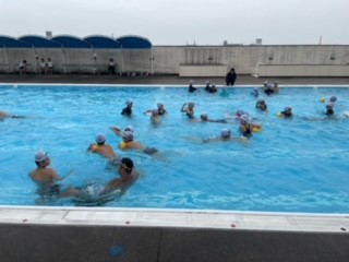 授業の終わりには「ぷかぷかタイム」です。いろいろな浮き方やもぐり方にチャレンジします。