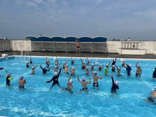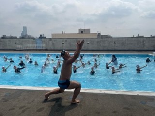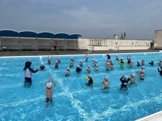 プールで学習している様子です。水の中でかわいいあひるさんに変身しています。